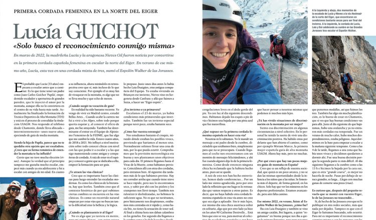 En marzo de 2022, la madrileña Lucía y la aragonesa Nieves Gil fueron noticia por convertirse en la primera cordada española femenina en escalar la norte del Eiger. En verano de ese mismo año, Lucía, esta vez en una cordada mixta de tres, sumó el Espolón Walker de las Jorasses.